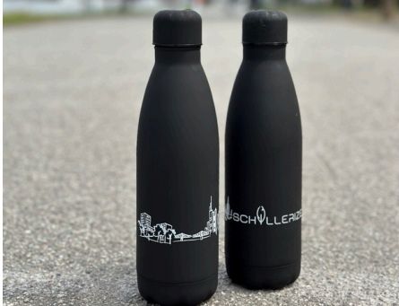 Unsere Trinkflasche aus leichtem Aluminium ist durch einen Schraubverschluss mit Gummidichtung vor dem Auslaufen geschützt. Erhältlich ist dieses Produkt mit unserem Logo und der Frankfurter Skyline in der matten Farbe schwarz.